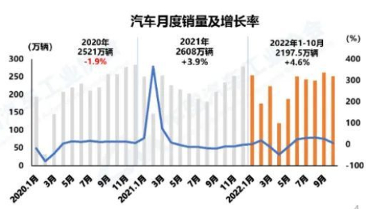 乘用車產銷同比保持兩位數增長 10月,乘用車產銷分別完成233.4萬輛和223.1萬輛,環比分別下降3.1%和4.3%,同比分別增長16.9%和10.7%。1-10月,乘用車產銷分別完成1955.1萬輛和1921.8萬輛,同比分別增長17.3%和13.7%。
