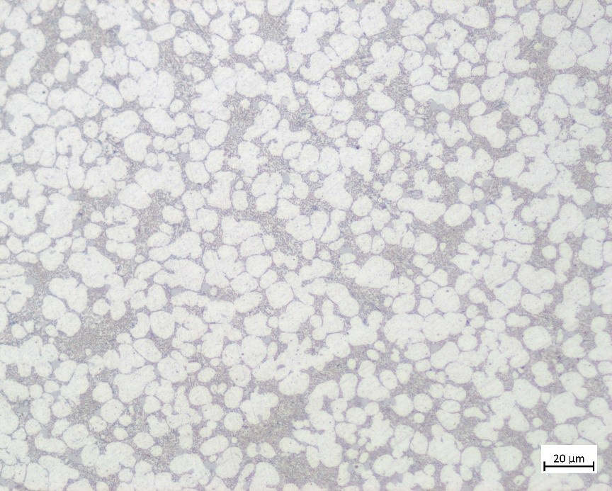 壓鑄扁試樣斷口形貌 斷口微觀組織為細小韌窩組織,無明顯的脆性相,且無明顯夾渣和嚴重氣孔,故JY-1合金具有較高的韌性。 2、金相顯微鏡組織形貌: