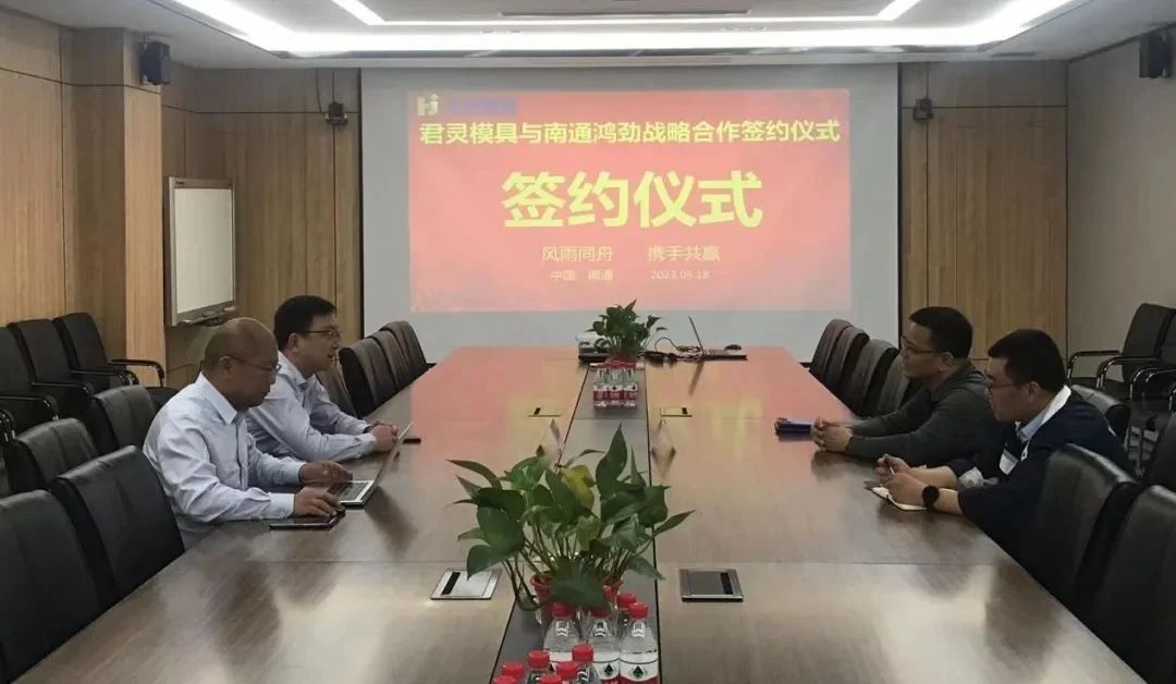南通鴻勁金屬鋁業有限公司總經理張海泉、副總經理韓耀斌,寧波君靈模具技術有限公司總裁姚賢君及公司企管部主要負責人等出席了本次簽約儀式。簽約儀式上,張海泉和姚賢君代表雙方簽署了《CDM.Onestop全產業鏈開發平臺戰略合作協議》。 寧波君靈模具技術有限公司總裁姚賢君介紹,近些年來,寧波君靈模具通過產業升級和市場重塑,逐步建立了以模具為核心的開發制造應用平臺。此次簽約,通過雙方的優勢互補,共同建立了一種行業合作新模式,為當下市場環境所需的降本、增效提供新的選擇。