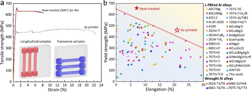 ![]() 近日,南方科技大學機械與能源工程系講席教授朱強團隊與香港城市大學呂堅院士團隊、北京科技大學毛新平院士團隊、澳大利亞昆士蘭大學張明星教授團隊合作,在增材制造(3D打印)鋁合金領域取得新進展,相關成果以“Additively manufactured fine-grained ultrahigh-strength bulk aluminum alloys with nanostructured strengthening defects”為題發表在學術期刊 Materials Today 上。 該研究表明通過激光粉末床熔融(L-PBF)增材制造技術,可促使鋁合金同時具備細化的多模態晶粒異質結構與納米尺度的面缺陷(如層錯,孿晶界,9R相),以此優化材料力學性能,使其屈服強度達到迄今為止幾乎所有L-PBF生產的鋁合金中最高水平(~656 MPa),并同時具有可觀的延伸率(~7.2%)。該類高強韌鋁合金的成功研發為用于先進結構應用的高性能鋁合金部件提供了新的范式,有利于輕量化設計和減少碳足跡。 金屬增材制造技術作為一種先進的材料成形工藝,為復雜結構零部件設計與成型及高性能合金的設計與開發提供了新的機遇。在雙碳約束與加快發展新質生產力戰略的背景下,市場對產品輕質高強化的需求與標準不斷提高。因此,具有優異力學性能的輕質鋁合金復雜結構零部件受到了航空航天、汽車工業和國防工業等領域的廣泛關注。目前,大多數鋁合金的金屬增材制造局限于近共晶的鋁硅成分(如AlSi10Mg),雖然這些成分容易加工,但力學性能較差。而具有最佳性能的沉淀硬化鋁合金(如2xxx或7xxx系列)由于凝固溫度區間大,在打印過程的極端凝固條件下極易發生熱裂現象,從而難以制備。朱強團隊與其他團隊之前的研究均表明,通過原位形成或外部引入與鋁基體晶格匹配的異質形核顆粒,和/或含有高生長限制因子(即高Q值)的有效溶質,可以在打印過程中引發顯著的晶粒細化與消除裂紋。然而,這些鋁合金在強度和延展性之間難以實現令人滿意的平衡,對打印鋁合金的更廣泛的商業部署與工業應用帶來了挑戰。 近期,材料學界在開發高性能金屬材料取得的突破揭示了引入納米級強化面缺陷(如孿晶邊界,層錯,9R相)以提高力學性能的變革潛力。以納米孿晶為例,其作為一種特殊的微觀組織可為金屬材料帶來諸如高強度、高穩定性等優異的性能,一直是行業內的研究熱點。但迄今為止,相關研究大多局限于具有中、低層錯能的金屬材料(如銅和銀等),在具有高層錯能的金屬(如鋁)中則很難形成納米孿晶組織。 對于工業上廣泛使用的鋁及鋁合金而言,如果能形成這些納米級的面缺陷進行強化,則有望大幅度提高其強度,從而擴寬其應用范圍。通常而言,將鋁與低層錯能金屬(如鐵,銀,鎂等)復合,可以在超快速凝固條件下(如物理氣相沉積)形成具有納米孿晶的鋁基薄膜。這種制備方法工藝復雜、條件嚴苛,同時需要利用低層錯能金屬作為孿晶源以誘發孿晶生長且僅能制備薄膜材料。對于塊狀材料而言,目前主要通過嚴重塑性變形來引入這些納米尺度的面缺陷進行強化,其實際應用則受到限制。因此,如何能在更加簡單的條件下直接制備出納米面缺陷強化的塊狀鋁材料仍是國際性難題,相關研究具有重要的理論意義與實用價值。