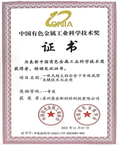 ![]() 革新材料 為汽車工業(yè)保駕護(hù)航 低碳使命 用綠色環(huán)保鑄就未來(lái) 中國(guó)新能源智能汽車產(chǎn)業(yè)強(qiáng)勢(shì)崛起,隨之而來(lái)的是供應(yīng)鏈技術(shù)的全面升級(jí)。輕量化新材料的應(yīng)用是其中的熱門(mén)話題,鋁合金則是現(xiàn)在應(yīng)用最廣泛的輕量化材料。中國(guó)車市越來(lái)越卷,各個(gè)廠家“卷技術(shù)、卷質(zhì)量、卷成本”,對(duì)于鋁合金技術(shù)的要求也越來(lái)越高。主要的要求集中在降本、性能和低碳環(huán)保這三個(gè)層面。 蘇州慧金新材料科技有限公司(簡(jiǎn)稱:慧金科技)堅(jiān)持“以市場(chǎng)需求為研發(fā)動(dòng)力”,通過(guò)與上海交通大學(xué)曾小勤教授團(tuán)隊(duì)的深度合作,開(kāi)發(fā)出免熱處理高強(qiáng)高韌鋁合金新材料“纖晶”,這款全棧自研的鋁合金新材料已應(yīng)用在豪華純電SUV極氪009的后車身上,并且在極氪001,極氪007后車身上也得到了量產(chǎn)應(yīng)用。該項(xiàng)目已獲得中國(guó)有色金屬工業(yè)科學(xué)技術(shù)獎(jiǎng)一等獎(jiǎng)。“纖晶”的應(yīng)用使得該零部件的生產(chǎn)過(guò)程徹底免除了傳統(tǒng)的熱處理強(qiáng)化工藝環(huán)節(jié),顯著提升了全流程生產(chǎn)效率,成功減少焊接點(diǎn)近800個(gè),在遇到?jīng)_擊時(shí)變形量可減少16%,彎曲剛度提升11%,有效保護(hù)車身后部安全。在這款產(chǎn)品的基礎(chǔ)上,慧金科技繼續(xù)深挖,通過(guò)市場(chǎng)反饋數(shù)據(jù),不斷拓展研發(fā)思路。并在近期推出全新綠色免熱處理再生鋁產(chǎn)品 “臻晶”,這款產(chǎn)品在“提升再生鋁添加比例”和“確保高品質(zhì)性能”之間做到極致平衡,并在能耗和排放方面突破行業(yè)極限。一經(jīng)推出就受到多個(gè)汽車品牌的高度關(guān)注,目前正處在驗(yàn)證階段,并即將實(shí)現(xiàn)大批量量產(chǎn),這款材料已經(jīng)獲得國(guó)內(nèi)、美國(guó)及歐盟國(guó)際專利。