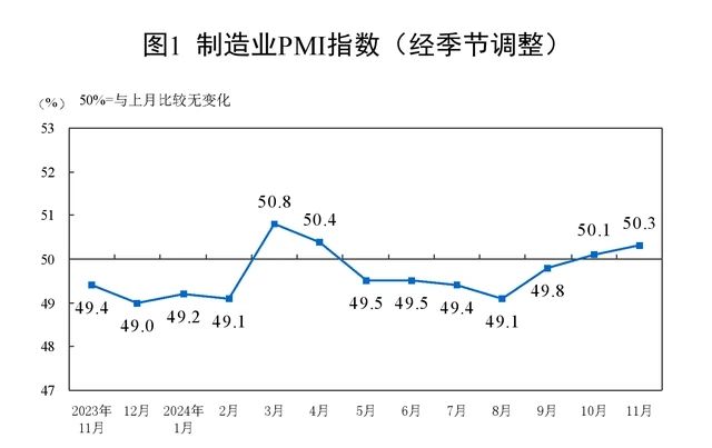 星源卓鎂獲鎂合金動力總成殼體零部件定點通知 星源卓鎂發(fā)布公告,其近日收到國內(nèi)某汽車零部件廠商出具的供應(yīng)商定點通知郵件,公司將為該客戶開發(fā)并供應(yīng)新能源汽車鎂合金動力總成殼體零部件。根據(jù)客戶規(guī)劃,項目預(yù)計從2025年中旬開始量產(chǎn),預(yù)計未來7年(2025—2031年)銷售總金額約為7.1億元。 偉時電子募資建輕量化車載新型顯示組件項目 偉時電子股份有限公司近日發(fā)布公告,公司擬發(fā)行A股股票募集資金總額不超過4.8億元,募集資金用于輕量化車載新型顯示組件項目及補充流動資金。募投項目選址位于江蘇省淮安經(jīng)濟(jì)開發(fā)區(qū),并購置土地新建廠房以及購置先進(jìn)生產(chǎn)設(shè)備及配套設(shè)備。 此次募投項目生產(chǎn)的輕量化車載新型顯示組件是新型背光顯示模組和輕量化鎂鋁結(jié)構(gòu)件的結(jié)合,產(chǎn)品主要采用半固態(tài)射出成型、CNC、包膠、化成、涂裝組裝等生產(chǎn)技術(shù)及生產(chǎn)工藝,并使用公司自行開發(fā)與制作的一體化模具進(jìn)行生產(chǎn)。 11月我國制造業(yè)PMI為50.3% 國家統(tǒng)計局發(fā)布數(shù)據(jù),11月份,制造業(yè)采購經(jīng)理指數(shù)(PMI)為50.3%,比上月上升0.2個百分點,制造業(yè)擴(kuò)張步伐小幅加快。11月份,綜合PMI產(chǎn)出指數(shù)為50.8%,與上月持平,表明我國企業(yè)生產(chǎn)經(jīng)營活動總體繼續(xù)擴(kuò)張。