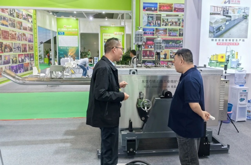 李瑞總經(jīng)理向潛在客戶介紹鎂爐產(chǎn)品 談及MD系列產(chǎn)品的核心優(yōu)勢,李瑞如數(shù)家珍:“這款產(chǎn)品最大的特點(diǎn)就是‘精準(zhǔn)、節(jié)能、易維護(hù)、壽命長’。我們針對不同噸位壓鑄機(jī)的需求,打造了覆蓋200T至9000T的全系列型號,能滿足絕大多數(shù)鎂合金壓鑄場景的使用需求。” 支撐這些優(yōu)勢的,是鎂正隆在技術(shù)設(shè)計(jì)上的創(chuàng)新。據(jù)介紹,MD系列鎂合金定量爐采用獨(dú)特的“雙室雙泵”結(jié)構(gòu)——其中“雙泵”分別為定量泵與轉(zhuǎn)液泵,這種設(shè)計(jì)能讓鎂液定量更精準(zhǔn),轉(zhuǎn)運(yùn)過程更穩(wěn)定可靠,從源頭上減少生產(chǎn)誤差。該系列設(shè)備還搭載了鎂正隆的發(fā)明專利——“直通式定量泵”。“傳統(tǒng)定量泵多為鵝頸式設(shè)計(jì),容易出現(xiàn)鎂液凝固堵塞泵底殼的問題,導(dǎo)致生產(chǎn)中斷;而我們的直通式設(shè)計(jì),能實(shí)現(xiàn)鎂液快速、準(zhǔn)確地澆注到料筒中,不僅減少了熱量損失、提升了成型品質(zhì),還徹底避免了堵塞問題,保障了生產(chǎn)的連續(xù)性。” 安全,是鎂合金加工過程中不可忽視的核心要素。李瑞強(qiáng)調(diào),鎂正隆在MD系列產(chǎn)品的安全設(shè)計(jì)上“下足了功夫”,采取了多重預(yù)警防護(hù)措施。以高液位報(bào)警為例,設(shè)備采用“雙液位檢測”設(shè)計(jì),即便其中一個(gè)檢測點(diǎn)出現(xiàn)故障,另一個(gè)檢測點(diǎn)仍能正常工作,有效規(guī)避了安全風(fēng)險(xiǎn);同時(shí),爐體的加熱、密封等重要部位也均設(shè)有安全檢測裝置,形成“全流程安全防護(hù)網(wǎng)”。“我們始終認(rèn)為,設(shè)備的安全性能是企業(yè)生產(chǎn)的底線,必須做到萬無一失。” 對于鎂合金行業(yè)的未來發(fā)展,李瑞持樂觀態(tài)度。他認(rèn)為,隨著新能源汽車輕量化要求升級、人形機(jī)器人商業(yè)化提速、低空經(jīng)濟(jì)設(shè)備小型化發(fā)展,鎂合金的應(yīng)用場景還將進(jìn)一步拓寬,“這意味著,市場對高性能鎂合金加工設(shè)備的需求不會降溫,反而會向‘更高效、更節(jié)能、更智能’的方向升級。