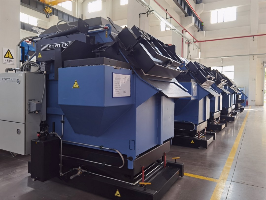 待出貨的定量爐 據了解,順應“大型一體化壓鑄”的趨勢,配合6000T以上超大型壓鑄島的定量給湯需求,STØTEK公司已成功開發兩款超大型保溫定量爐——DTI 6020和DTI 8020,并以此為基礎搭配全密閉流槽和新開發的PRO-DOSE預定量系統,推出超大型壓鑄島定量給料系統。其中,DTI 8020的最大鋁水容量為8000Kg,實際可用容量可達5000Kg,單泵給湯量最大為150Kg,定量速度為10Kg/s;雙泵給湯量最大為200Kg,定量精度為±1%及以上。目前,兩款產品均已在中國客戶工廠服役。