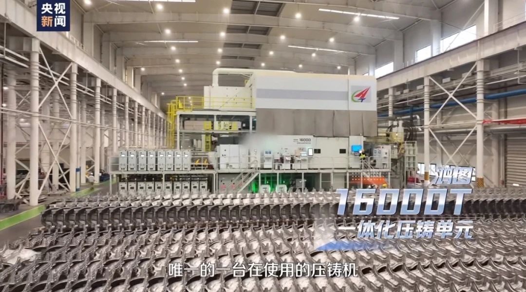 圖源:央視新聞 資料顯示,廣東鴻圖是全球知名鋁合金壓鑄汽車零部件龍頭企業(yè),其生產(chǎn)基地遍布華南、華中、華東、華北和西部地區(qū),目前擁有16家生產(chǎn)基地。在大型一體化壓鑄方面,廣東鴻圖擁有6800T、7000T、12000T、16000T等噸位型號的超大型壓鑄單元。 |