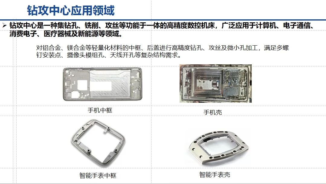 格力鉆攻機 格力鉆攻機是集鉆孔、銑削、攻絲等功能于一體的高精度數(shù)控機床,廣泛應用于計算機、電子通信、消費電子、醫(yī)療器械及新能源等領域,可對鋁合金、鎂合金等輕量化材料的中框、后蓋開展高精度鉆孔、攻絲及微小孔加工,能滿足多螺釘安裝點、攝像頭模組孔、天線開孔等復雜結構的加工需求。