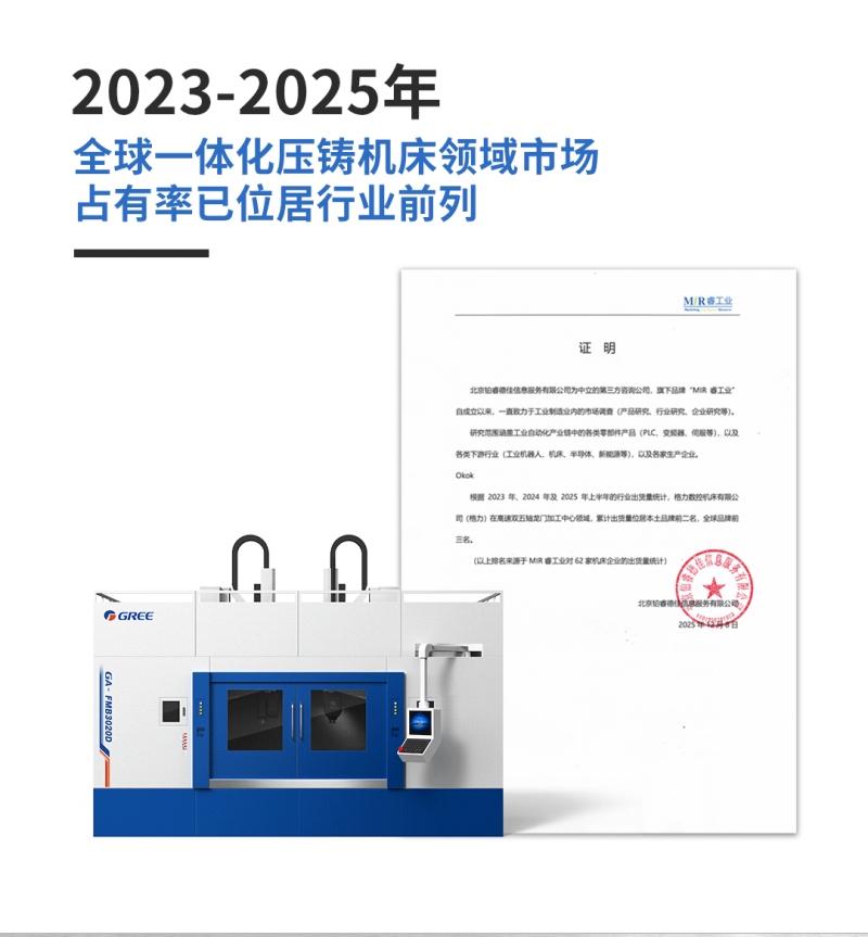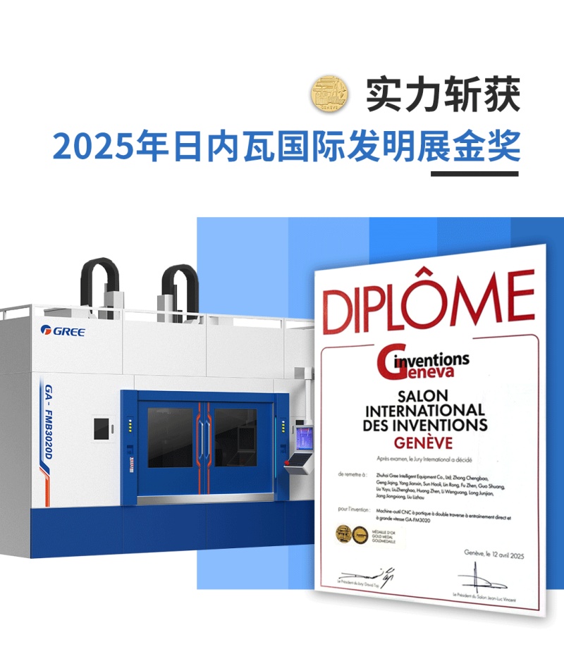 ![]() 為滿足不同尺寸大小、各類應用場景的輕金屬合金壓鑄件的精密加工需求,珠海格力智能裝備有限公司(簡稱“格力智能裝備”)推出高速雙五軸龍門加工中心、高速高精臥式加工中心、鉆攻機等多款CNC機加工裝備。 高速雙五軸龍門加工中心 格力高速雙五軸龍門加工中心 GA-FMB3020D,專為汽車輕量化一體化壓鑄而打造,可實現(xiàn)一次裝夾六面加工的一站式解決方案。主要用于前機艙、后底板、電池托盤等大型一體化壓鑄新能源汽車零部件的精密機加工。該機型還在 2025 年斬獲日內(nèi)瓦國際發(fā)明展金獎。