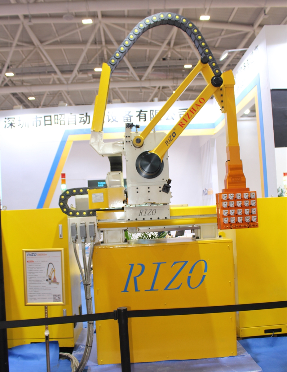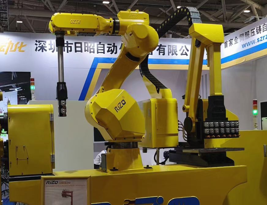 2020年是不平凡的一年,突如其來的新冠肺炎疫情,對各行各業(yè)造成沖擊。盡管如此,日昭自動化化危為機,積極拓展和布局全國市場,在浙江、江蘇、重慶等地設立營銷子公司以及產品與備件中心,公司業(yè)績實現(xiàn)逆勢大幅增長。與此同時,為實施公司業(yè)務多元化發(fā)展戰(zhàn)略,以及著眼于長遠規(guī)劃及解決產能問題,日昭搬遷至更大規(guī)模的生產基地。 本屆展會,日昭自動化現(xiàn)場展示了其最新的產品系列,亮點頻出,不僅展現(xiàn)了其強大研發(fā)能力,還彰顯了其引領壓鑄自動化潮流的實力。據(jù)了解,日昭自動化現(xiàn)場展示了RV壓鑄機械手系列產品,鑄造版六軸機器人,四軸噴取一體線性機,以及涵括冷卻、去渣包、鋸切等在內的壓鑄后處理自動化線(島)。 主推全伺服RV給湯/噴霧/取件機 日昭自動化RV壓鑄機械手,于去年榮獲由中國機械工程學會鑄造分會(FICMES)、鑄造行業(yè)生產力促進中心聯(lián)合頒發(fā)的“2019全國壓鑄創(chuàng)新技術獎”。RV機械手作為新一代壓鑄機械手,憑借著其結構簡單,運行速度快、效率高,近年來受到用戶青睞。此次,日昭自動化帶來了RV冷室伺服取件機、RV雙伺服五連桿自動給湯機、RV伺服磕頭噴霧機等三款產品。
