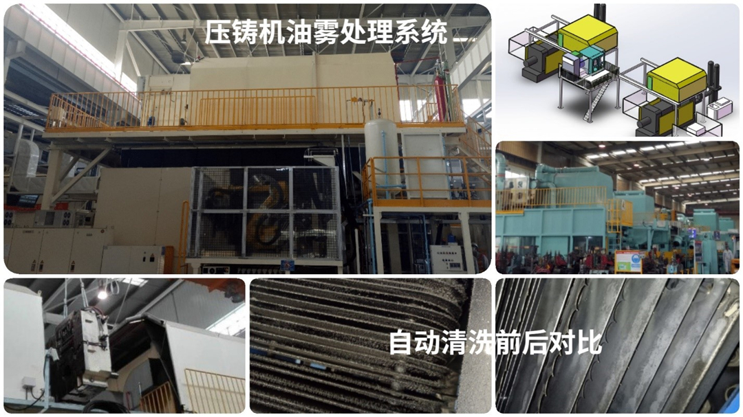 熔爐除塵及在線監(jiān)測(cè)系統(tǒng) 壓鑄領(lǐng)域煙霧凈化設(shè)備全面升級(jí) 壓鑄領(lǐng)域排出污染物統(tǒng)稱“壓鑄機(jī)煙霧”,其來(lái)源于脫模劑和沖頭油,脫模劑經(jīng)過(guò)高壓噴射和高溫分解,產(chǎn)生大量的油霧顆粒和有機(jī)物,沖頭油經(jīng)過(guò)燃燒產(chǎn)生大量具有一定腐蝕性的黑色煙氣。譚文儉先生說(shuō):“之前不少企業(yè)的壓鑄機(jī)煙氣處于四處冒煙的無(wú)組織排放狀態(tài),現(xiàn)在按環(huán)保新標(biāo)準(zhǔn)要求,必須進(jìn)行收集處理。治理壓鑄機(jī)煙霧在早十年還不成熟,存在收集不完全(約80%)、凈化效率低(約70%),并且維護(hù)成本高,存在防火安全隱患。現(xiàn)在我們產(chǎn)品技術(shù)全面升級(jí),主要表現(xiàn)在集煙罩集煙效率高(95%以上),并適合多樣性的滑動(dòng)技術(shù),高效率(90%以上)無(wú)耗材靜電過(guò)濾技術(shù),一鍵操作式清洗技術(shù)和末端除臭技術(shù),加上適合遠(yuǎn)程供貨的標(biāo)準(zhǔn)模塊化集煙罩,一個(gè)一個(gè)技術(shù)加以攻克,產(chǎn)品從500t到3400t全覆蓋,為批量化生產(chǎn)打下基礎(chǔ)”。