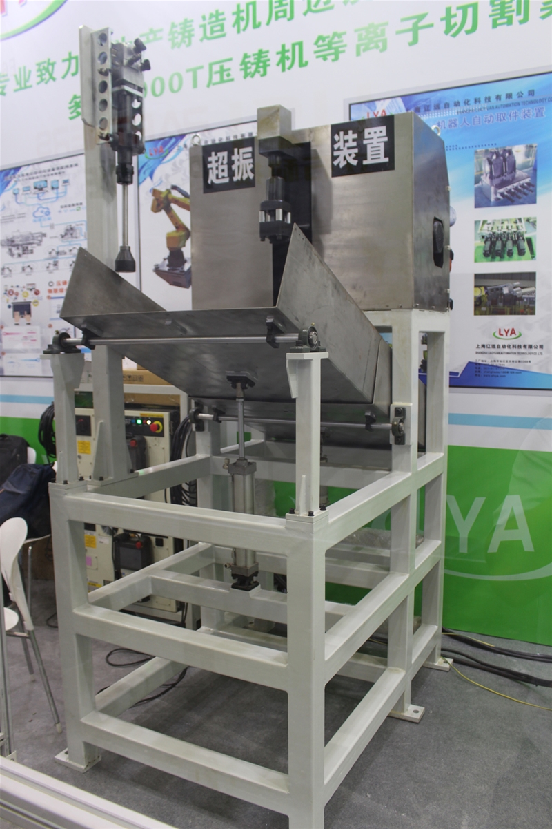 遼遠超振裝置 據介紹,遼遠自動化超振裝置是一種壓鑄件進澆口共振破斷分離裝置,通過變頻電機帶動偏心軸,再通過軸連接法蘭的連軸裝置產生內部振動,實現產品與澆口的分離。該裝置設定了2個工位,具有去料柄效率高、適應范圍廣、占地少、頻率可調,可集中收集料柄,成本低的特點。裝置不用切邊模,并節省了油壓切邊設備和切邊模具的投入成本。