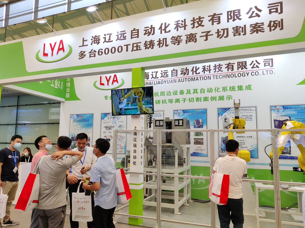 遼遠六軸等離子切割裝置 遼遠自動化展示的六軸取件機器人的抓手采用了內制氣缸試樣設計,具有重量輕、負載更小,壽命更長的優點,同時也可根據客戶要求定制取件、鑲件一體抓手。六軸等離子切割裝置主要針對大型壓鑄件切割去料柄,具有循環時間快、切割精準等優點。對于大型壓鑄件容易變形的缺陷以及使用油壓切邊機進行切邊模產生的高成本,等離子切割裝置有很好的成本優勢。同時,還可根據客戶的需要配置切割房及防爆除塵功能,使生產更安全。 隨著新能源汽車鑄件大型一體化以及配套設備超大型壓鑄機的市場化應用,壓鑄行業設備商及配套商也迎來了發展機遇。遼遠自動化總經理胡培民先生表示:“超大型壓鑄機的應用實現了大型鑄件生產,公司今后也將開發出超大型壓鑄機(6000T以上)配套的設備,在抓住機遇的同時也不斷提升自動化技術研發能力。另外,公司還會著力于靜電噴涂和微量噴涂、針對以上噴涂對模具的溫度控制較高,我們開發了模具冷卻控制系統,能精確控制模具溫度,形成最佳脫模效果。同時針對6000T開發了料柄抓手和產品取件抓手。”