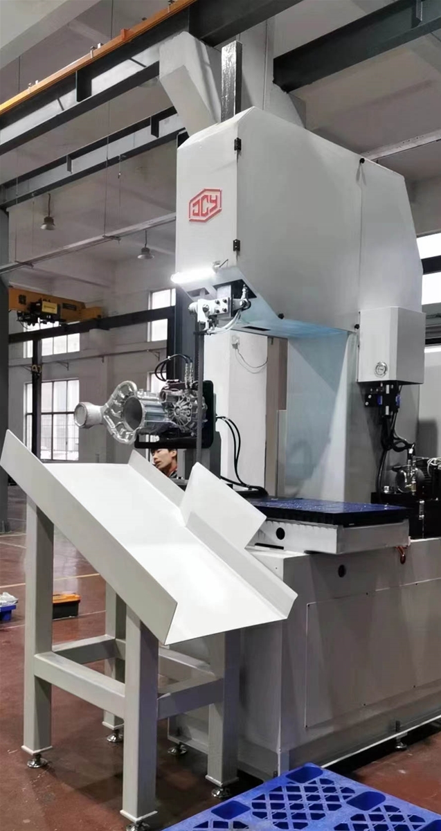 ![]() 壓鑄件的輪廓往往是不規則的曲線,要去除壓鑄件毛坯周邊的澆冒口,使用具有經濟且高效特點的直線行程的高速鋸切機難以實現。近期,積誠優機械設備(蘇州)有限公司(“蘇州積誠優”)結合多年實踐經驗,不斷進行技術創新,突破原有的鋸片走直線行程,成功開發出可走曲線行程的曲線輪廓鋸。曲線輪廓鋸可一次性連續鋸切壓鑄件周邊的澆冒口。