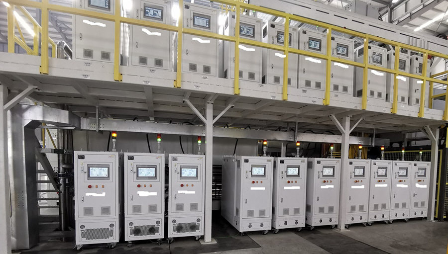據介紹,奧德高端裝備公司根據大型汽車結構件一體化壓鑄成型的溫控需求,設計及研制出系統性的溫控解決方案,并推出用于匹配“一體化壓鑄成型”的一系列高溫、中溫、低溫溫控產品。該全套溫控島解決方案包含:180℃-200℃水溫機、320℃油溫機、冷熱溫控站、多通道模冷機、多通道點冷機等硬件設備,以及統一系統控制的中央集成控制系統。 成熟穩定的“大型一體化壓鑄”模溫控制系統 據了解,大型一體化壓鑄汽車結構件的制作流程長且薄壁,要求模具溫度在長流程過程中,能夠根據不同的流態精準控制不同模區的溫度,因此對模溫控制的幅寬有著已知和未知的需求。奧德公司以此為基礎,結合多年設計及應用經驗,設計出20℃~320℃的大寬幅可調溫區,給模具溫度平衡提供穩定且可控的溫度源輸出,同時大幅度的溫度輸出不僅可以對模具進行溫度平衡控制,還可以延伸至對壓室、沖頭、分流錐、澆口套等進行溫度控制,從而留給了壓鑄工藝師足夠的操作調整空間。這樣既保障了每一模鑄件的品質,又大大縮短了每一模次的生產周期。