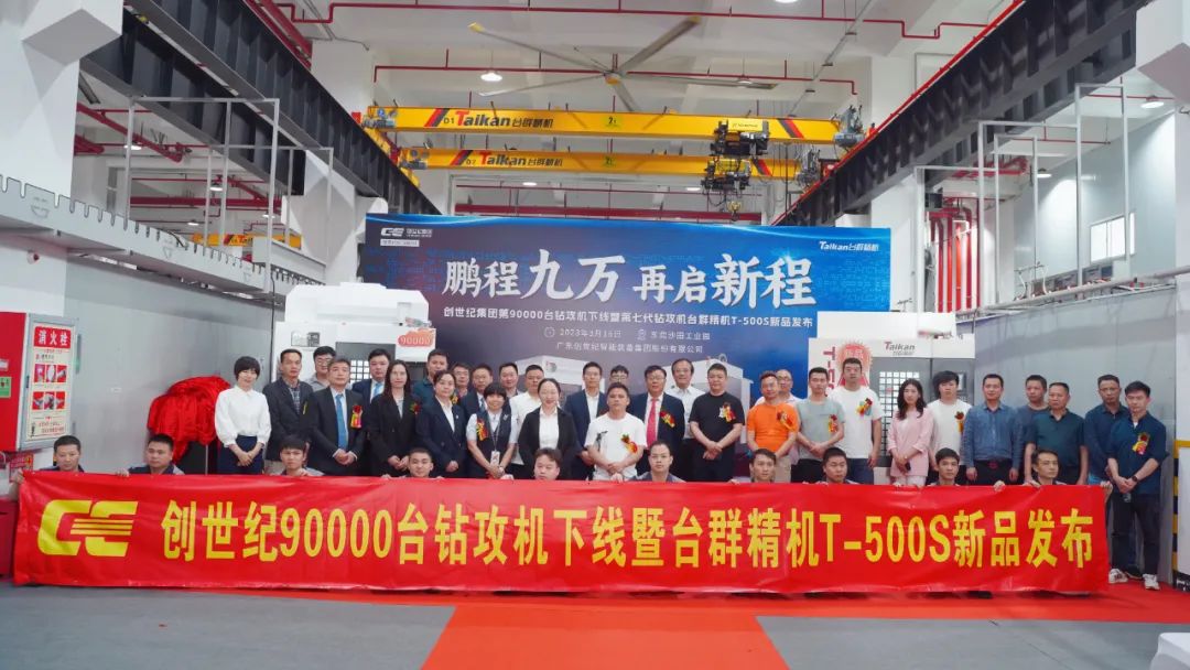 ![]() 2023年3月16日,創(chuàng)世紀(jì)集團(tuán)第90000臺(tái)鉆攻機(jī)下線暨第七代鉆攻機(jī)臺(tái)群精機(jī)T-500S新品發(fā)布會(huì)在創(chuàng)世紀(jì)東莞生產(chǎn)基地隆重舉行,集團(tuán)客戶、行業(yè)友商、媒體朋友們共同見證了里程碑式歷史性時(shí)刻。 創(chuàng)世紀(jì)集團(tuán)自2011年臺(tái)群精機(jī)第一代鉆銑加工中心研發(fā)成功,到自主研發(fā)生產(chǎn)的“3C高速鉆攻中心”于2022年榮獲國(guó)家級(jí)第七批制造業(yè)企業(yè)(產(chǎn)品)單項(xiàng)冠軍,再到今天第90,000臺(tái)鉆攻機(jī)下線,標(biāo)志著集團(tuán)以品質(zhì)提升為導(dǎo)向的技術(shù)創(chuàng)新和模式創(chuàng)新提交了完美答卷。在數(shù)智化浪潮下,全球各區(qū)域、各行業(yè)面臨著不同的機(jī)遇和挑戰(zhàn),要轉(zhuǎn)型變革,實(shí)現(xiàn)高質(zhì)量發(fā)展,離不開制造業(yè)的大整合、大變革。重振行業(yè)勢(shì)態(tài),重構(gòu)產(chǎn)業(yè)生態(tài),重塑機(jī)床高質(zhì)量發(fā)展活力成為創(chuàng)世紀(jì)集團(tuán)未來發(fā)展的重點(diǎn)工作。