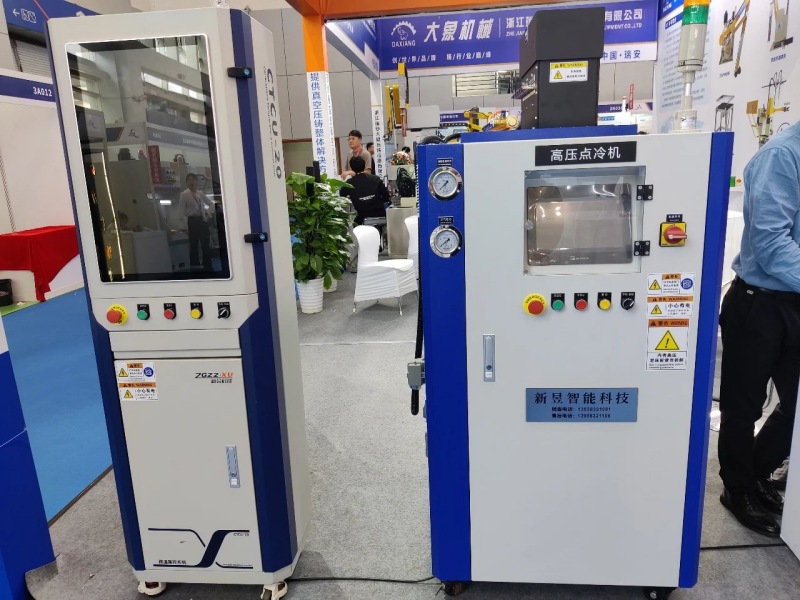 此外,新昱智能還展示了高壓點(diǎn)冷機(jī)和水模溫機(jī)等產(chǎn)品。高壓點(diǎn)冷機(jī)具備模具斷銷報(bào)警功能,能夠有效解決產(chǎn)品拉傷、粘模等問(wèn)題。水模溫機(jī)則能夠快速冷卻/升溫,節(jié)能環(huán)保,降低后期維護(hù)成本。除了溫控設(shè)備外,新昱智能還專注于為壓鑄廠提供整套溫控島解決方案,滿足客戶的多樣化需求。