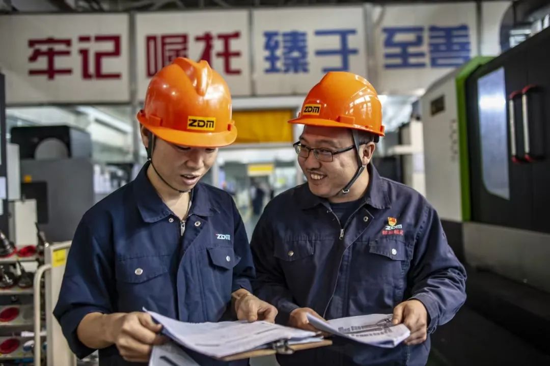 企業(yè)生產(chǎn)車間內(nèi)員工交流經(jīng)驗(yàn) 對(duì)此,技術(shù)團(tuán)隊(duì)經(jīng)常奮戰(zhàn)在機(jī)器旁,積極探索、不斷嘗試,致力于突破某項(xiàng)技術(shù)難點(diǎn),優(yōu)化某臺(tái)生產(chǎn)設(shè)備。 “有了這種模具噸位制造的實(shí)力,就意味著企業(yè)贏得了更大市場(chǎng)。”劉瑾介紹,“但我們追求的終極目標(biāo),并不是噸位的升級(jí),而是在能力范圍內(nèi)把所有的產(chǎn)品做精做好。” 今年11月,臻至還交付了一臺(tái)13500噸的適配壓機(jī),模具自重102噸,制作周期128天,生產(chǎn)效率獲得了合作客戶的高度認(rèn)可。