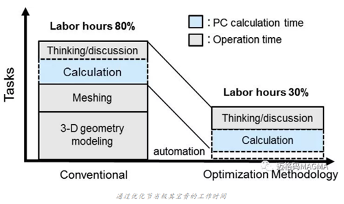 通過這種方式,可以在前期就完全避免出現澆不足問題,而且通過優化結果評估,能夠輕松的找到更好的充型方案以及更好的質量方案。 與傳統模擬過程相比,通過應用 MAGMASOFT®自主設計,像 3D 幾何建模和網格化等大量的手工任務都可以完全避免掉,因此可以節省非常多的時間。