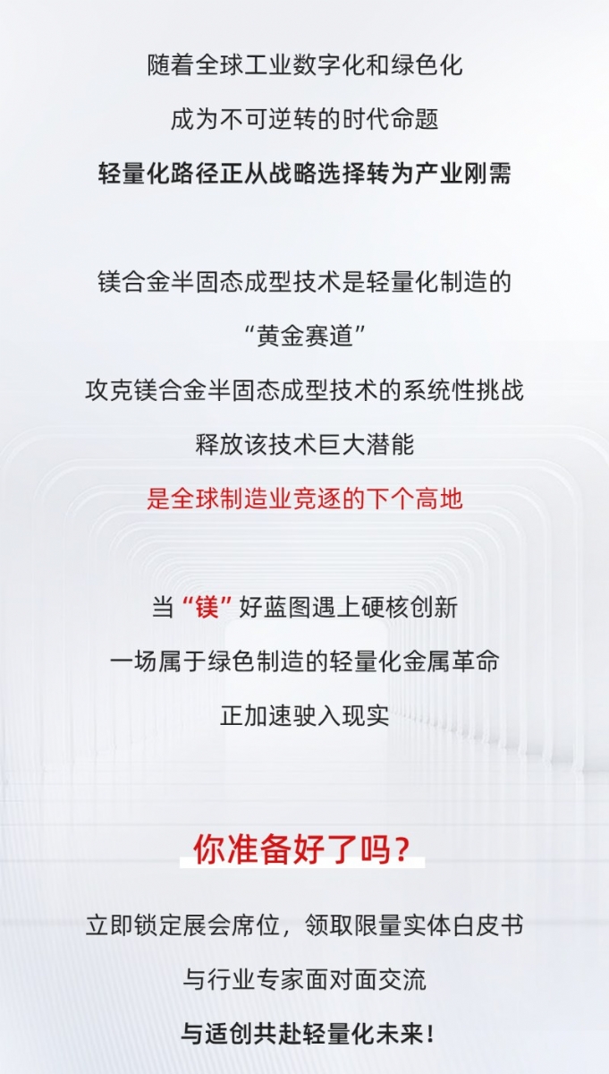 2025上海壓鑄展首發(fā)!適創(chuàng)科技「鎂合金半固態(tài)成型技術(shù)白皮書」