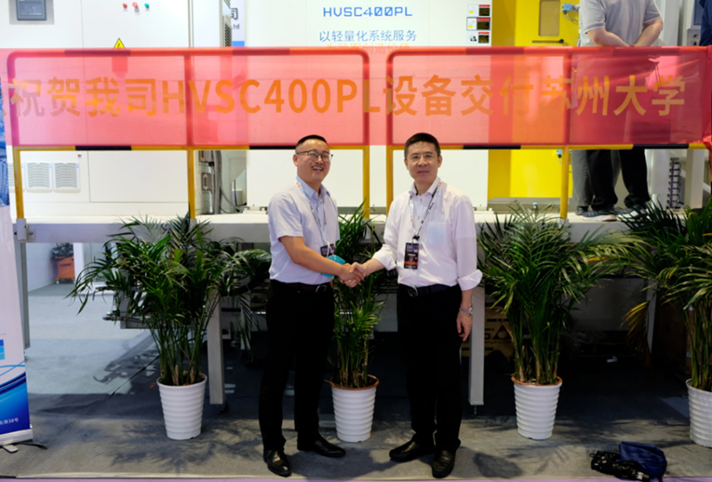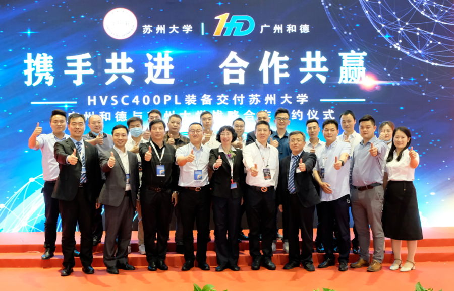 蘇州大學(xué)張海教授與廣州和德石洪偉總經(jīng)理 隨后,廣州和德總經(jīng)理石洪偉向雙方達(dá)成的戰(zhàn)略合作表示感謝。他表示,和德將第三代HVSC400PL型擠壓鑄造裝備交付給蘇州大學(xué),雙方將在基于擠壓鑄造成型工藝專用材料研發(fā),80-120MPa機(jī)械靜壓力下凝固過(guò)程中溫度、壓力對(duì)產(chǎn)品力學(xué)性能的影響等基礎(chǔ)理論方面進(jìn)行研究,最終形成基于此工藝的底層數(shù)據(jù)及邏輯框架,廣泛服務(wù)于擠壓鑄造行業(yè)。 儀式最后,在與會(huì)領(lǐng)導(dǎo)和行業(yè)同仁的見(jiàn)證下,校企雙方領(lǐng)導(dǎo)共同簽訂了戰(zhàn)略合作協(xié)議,并合影留念。
